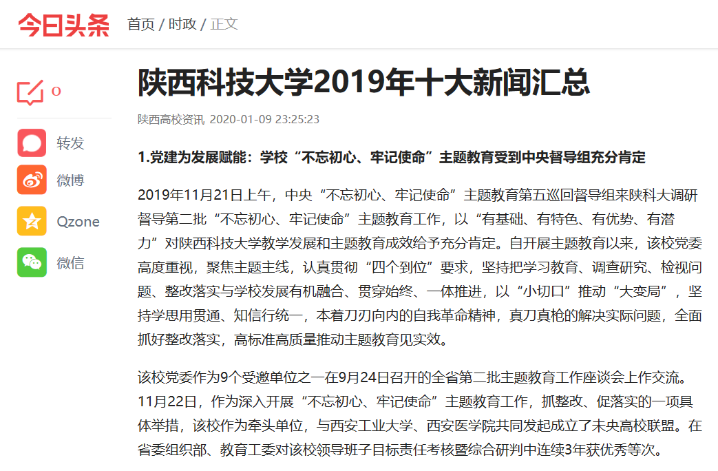 近日,网易新闻APP、今日头条APP、三秦网等媒体纷纷报道金沙官网2019年度js3845金沙线路十大新闻汇总。