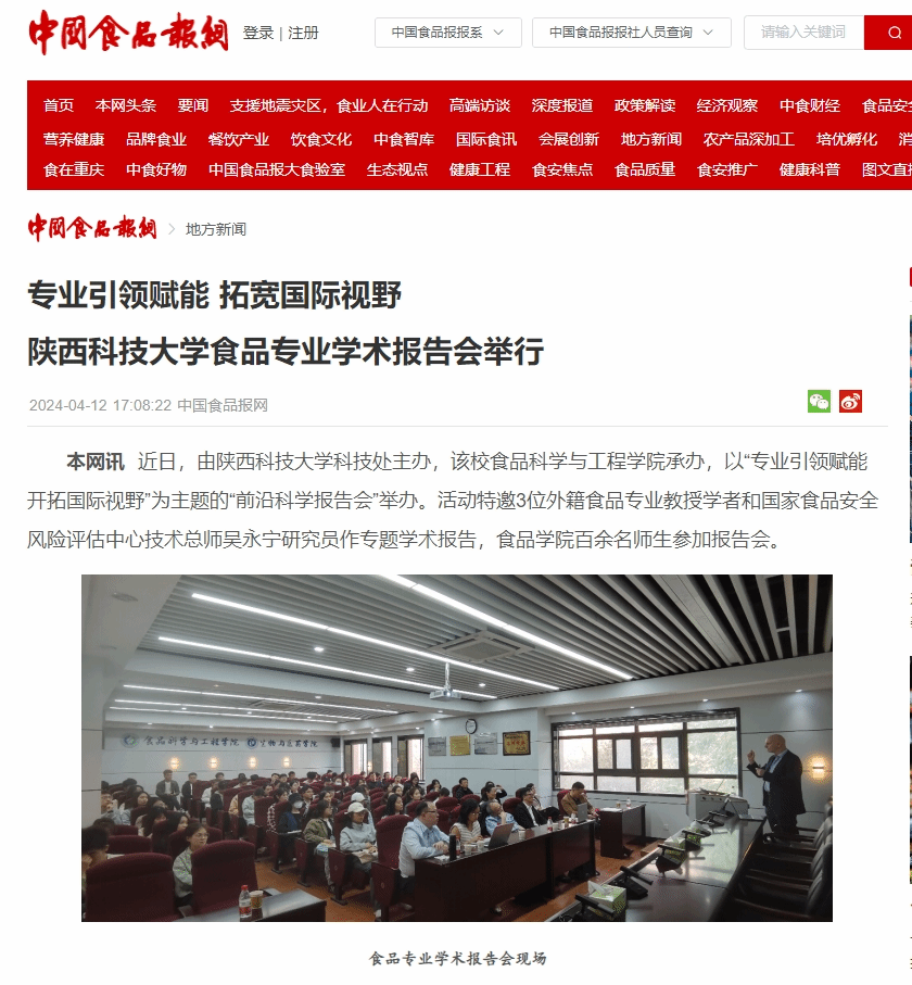 近日,中国食品网报道金沙官网举行食品专业学术报告会。
