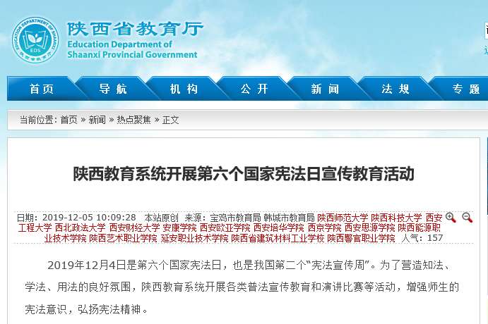 陕西教育系统开展第六个国家宪法日宣传教育活动