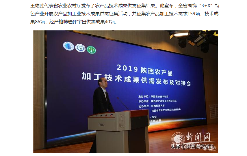 网易新闻APP:2019陕西农产品加工技术成果供需发布及对接会在js3845金沙线路举办