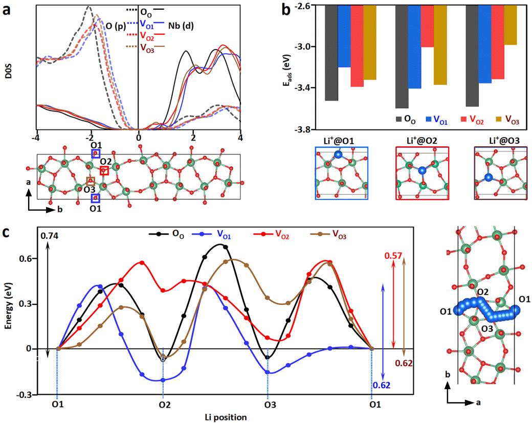 晶格氧空位对T-Nb2O5的态密度、锂离子吸附能和扩散动力学影响的理论研究
